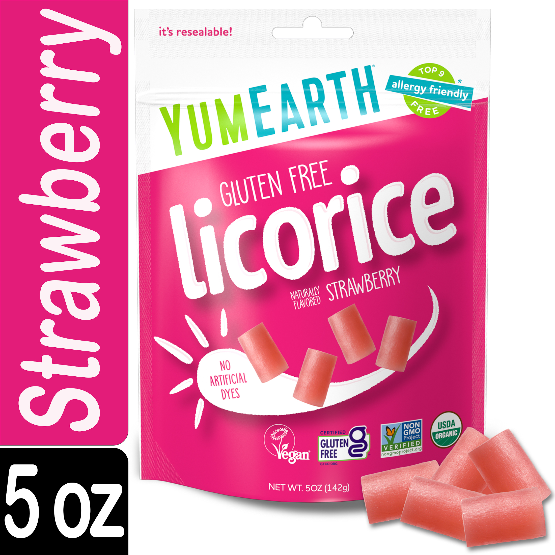 YumEarth Organic Strawberry Licorice, Gluten Free, 5 oz Bag